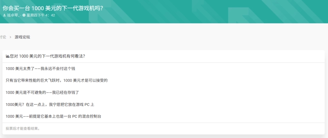 投票详细数据显示,43.2%的玩家认为“1000美元太贵,绝不会购买”,而29.0%的受访者更愿意将这笔预算用于组装游戏PC。仅15.6%的用户认为在性能有重大提升的前提下可接受此价格,6.3%已开始为高价主机存钱。主机价格的持续上涨是引发讨论的主要原因。自PS5与Xbox Series系列发布以来,主机及周边设备价格已出现多轮上调,这种趋势在主机发展史上较为罕见。部分玩家表示,与其花费千美元购买新主机,不如投资可自由升级的PC平台。但也有观点指出,当前PC显卡与核心组件价格同样居高不下,组装高性能PC的总成本可能并不低。若未来主机定价接近或超过千美元,将极大考验市场接受度。