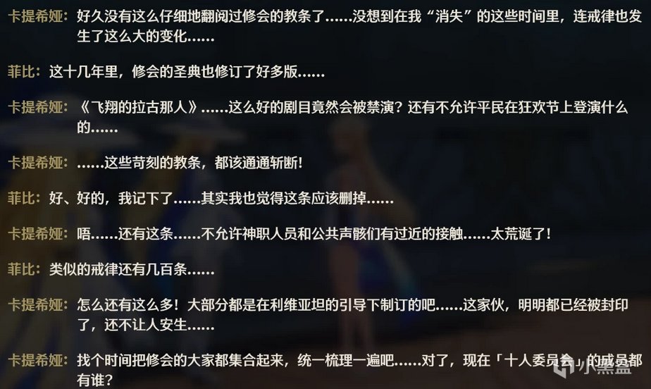 直到聊戒律聊到大芬哥,卡提一句重新選取修會領導人的事要提前,氣氛瞬間大變,菲比立馬接上一句卡提要參選嗎?這句話問出來不是因爲菲比覺得卡提參與會危險,而是趁機強攻,因爲菲比不問的話卡提真可能參與菲比沒準選不上,但菲比問了,卡提答也不是不答更不是,這主座就非她莫屬了。