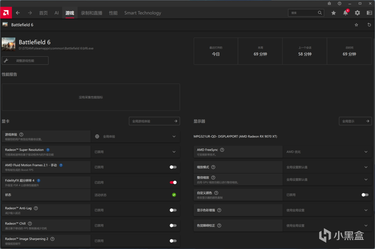 AMD最新驅動已經對《戰地6》支持FSR 4技術,RX 9000系列顯卡用戶務必更新,FSR可分爲FSR NATIVE AA(原生)、質量、平衡、性能和超高性能檔,帶有FSR幀生成和AMD anti Lag功能,要是原始幀足夠高建議可以嘗試開啓幀生成,效果總好過戰地自家的未來幀渲染技術——提升小之餘輸入延遲還明顯增加。