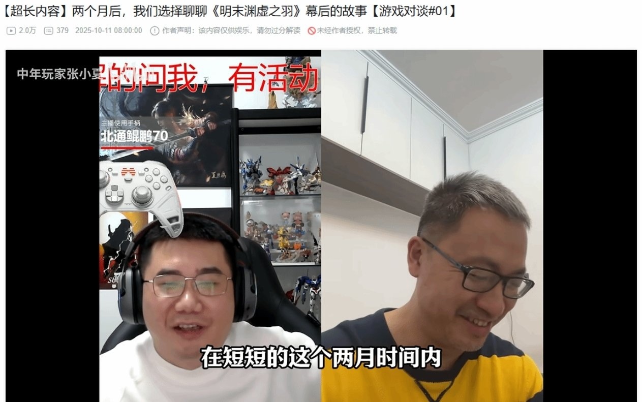 B站游戏区知名UP主@中年玩家张小夏近日与@狼叔说游戏直播连麦,透露了《明末:渊虚之羽》大量幕后故事。