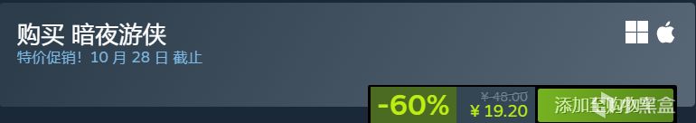 遊戲開啓四折優惠,折後19.2元可入庫,優惠截止於十月二十八日