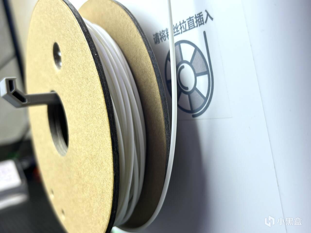 接下來看看側邊,其實就是放料絲的地方,有一個放置的支架,以及進料口。這個也算是3D打印機最花錢的地方了!因爲買料絲真的很貴,一開始只會送你一卷白色的料絲,你要想搞點其他配色,要麼選擇用筆自己畫,要麼就是換其他配色的料絲了。