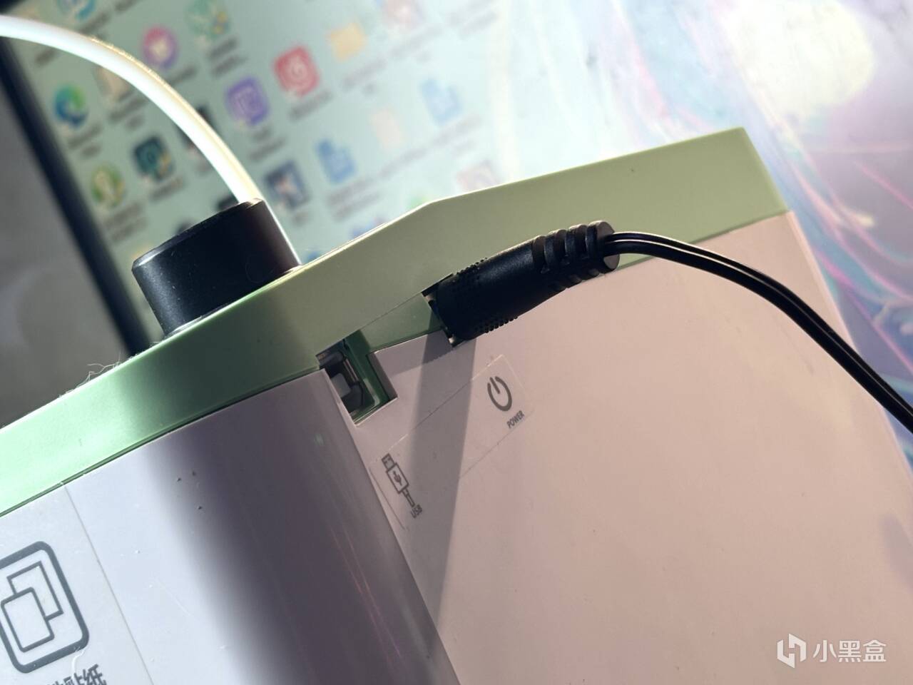 拆封之後,它真的有點讓我意想不到,因爲在我的記憶中,大部分打印機都是非常大,而且比較笨重的,但是它卻非常小巧,而且設計感非常強,總共是三種顏色可以選擇,不過我是挺喜歡綠色的,整體就是綠色和白色的撞色搭配,頂部和底部是綠色,中間則是白色。