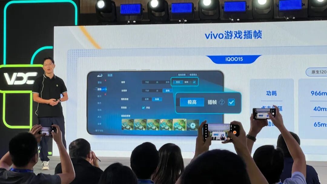 這次,vivo邀請了《王者榮耀》客戶端開發負責人鍾於勝,分享雙方的技術合作如何爲玩家提供一個“既要又要”的解決方案。通過調用Q芯片的硬件級遊戲插幀方案,遊戲本身僅需原生渲染 60幀,藉助Q芯片將畫面“插”到120幀。
