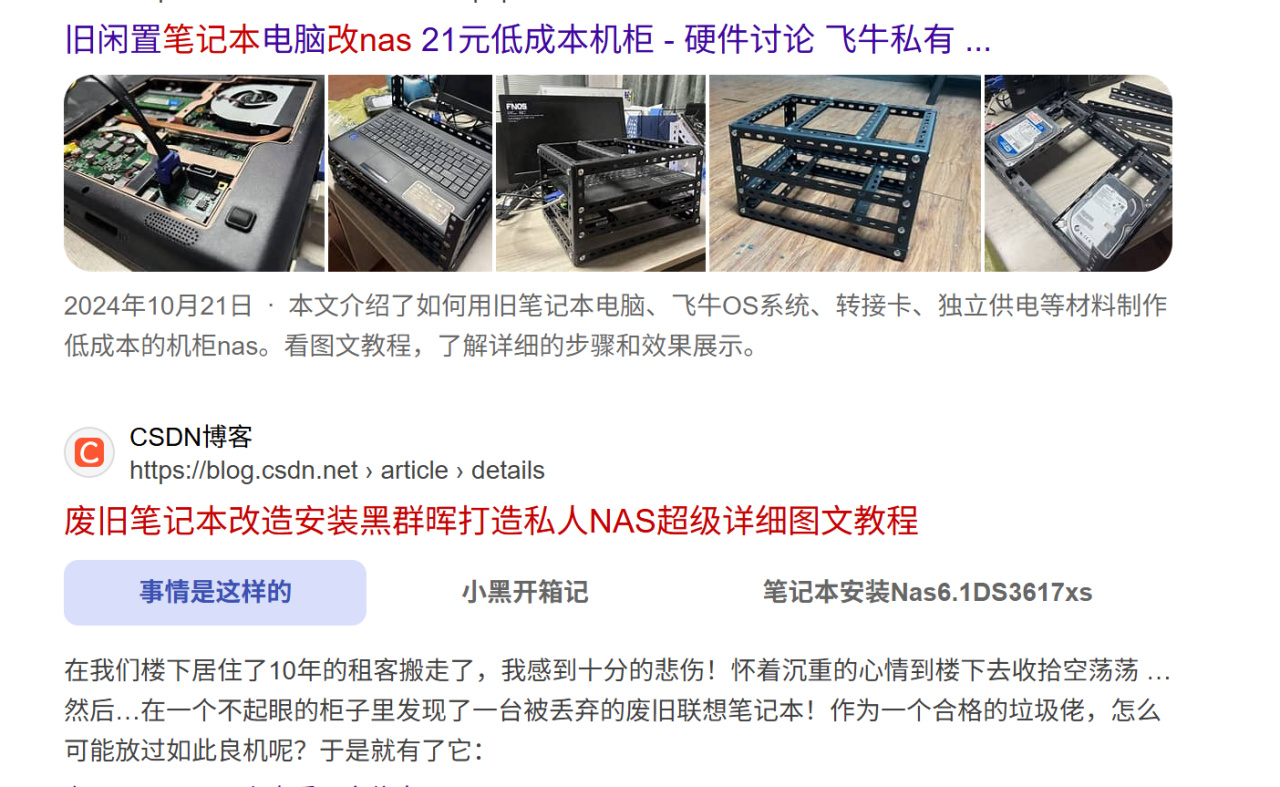 前面說過,NAS本質上就是一臺塞滿硬盤的小電腦,網上有很多類似把筆記本/舊電腦改裝成NAS的方案,舊物利用,極客屬性拉滿。