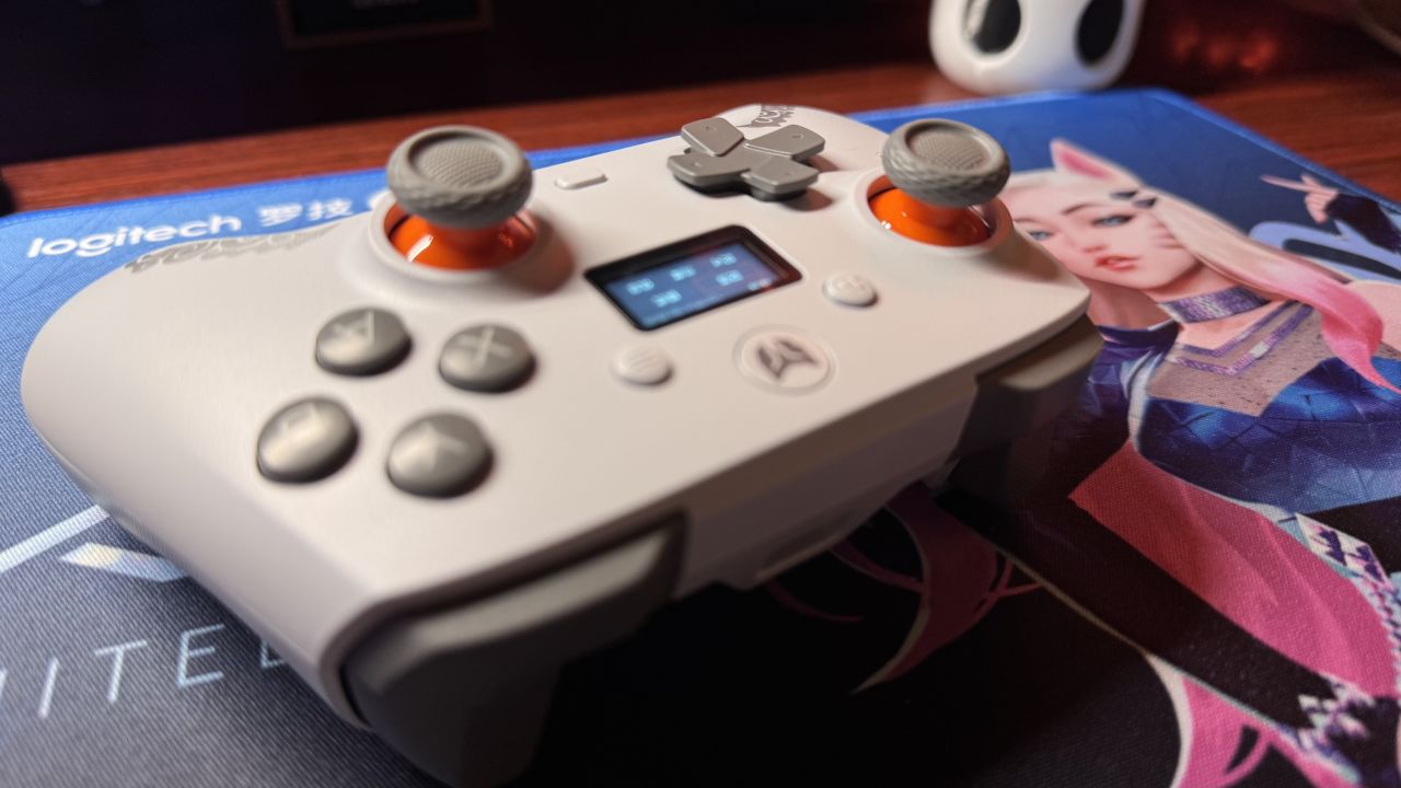 墨將凌雲最具特色的設計莫過於其正面的智慧數顯屏幕,我一開始還以爲是智商稅,但是實際體驗下來確實不錯。屏幕可以實時顯示手柄的電量、連接模式和當前設置參數,對於像《波斯王子:失落的王冠》這種動輒數小時的馬拉松式遊戲來說,電量監控尤爲重要。