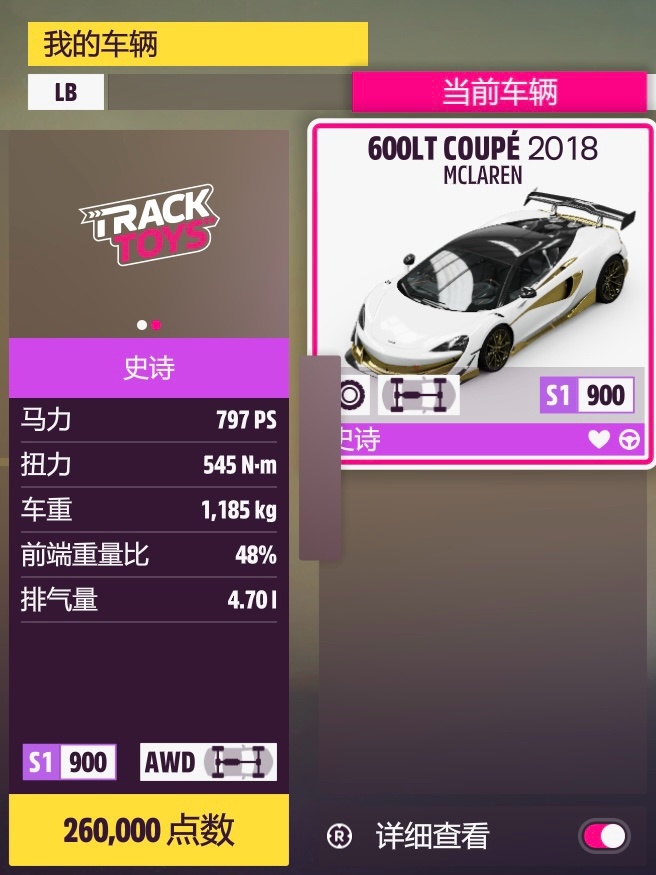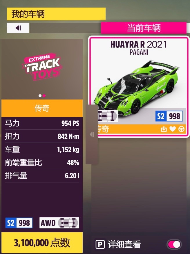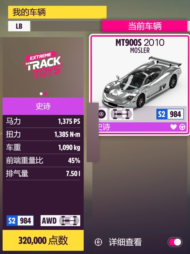 上次的塗裝還沒來得及總結,大概率明天發。先配個半Purist調校,除了改四驅以外保留了原廠的大部分配置,畢竟強度也比不過同家的Zonda R,就留原廠引擎聽個響吧,聲浪還是挺獨特的。當然肯定還是偏向操控的,畢竟是不可上路的賽道車,手感還不錯。