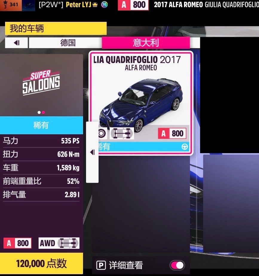 第二第三關可以一起做,用這輛17款阿爾法羅密歐朱麗葉(車展有售),到時間了再下調校就行,調校代碼623 082 542(臨時隨手調的,包外觀不包強度);公制單位後面的英制單位不用管,以公制爲準;後面幾關基本用原廠車就行就不做推薦了;賽車服在“服裝”類別內。