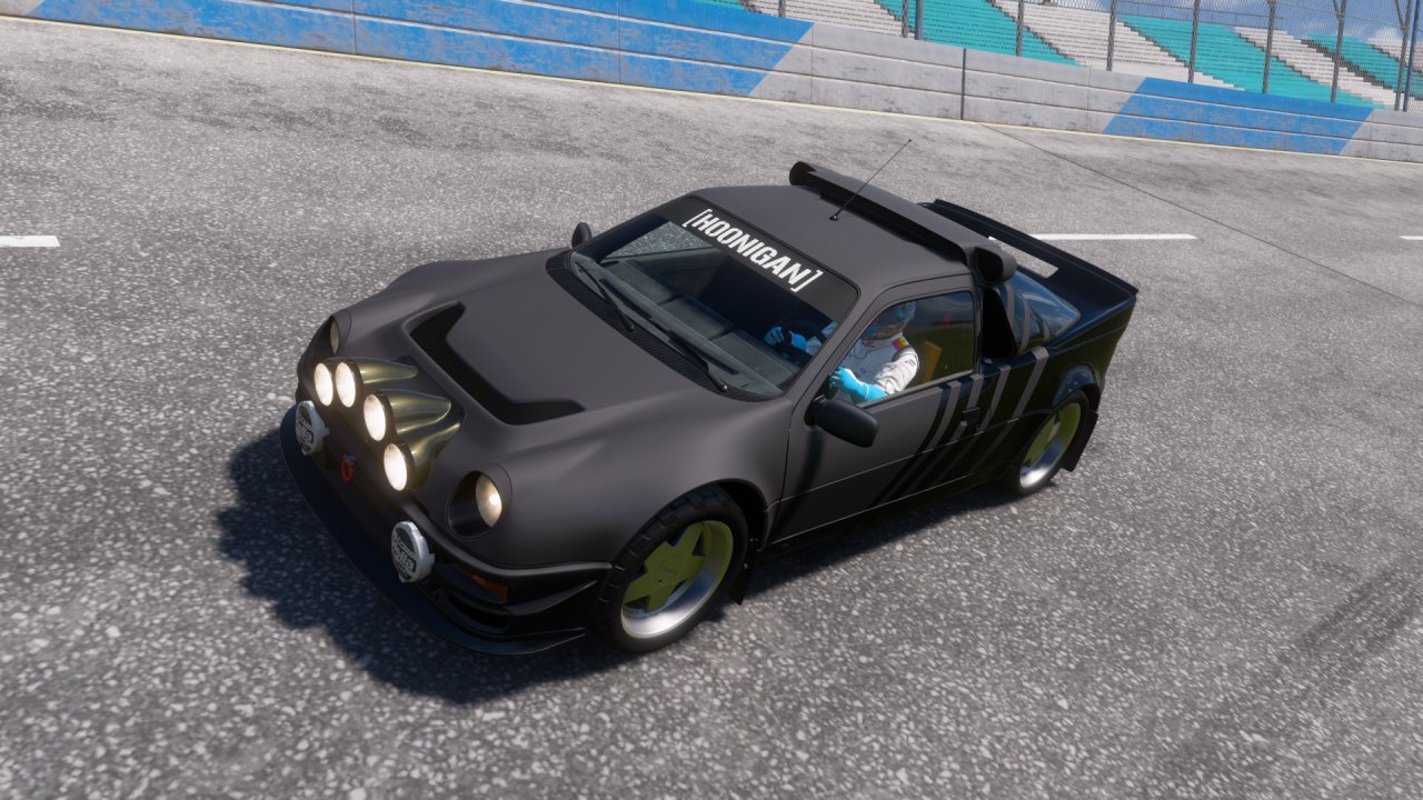 用四個字評價這個藍圖就是… 構思依託。當然也不是說做的不好,在路面沒那麼完美的情況下能不能把天氣調得正常一點… lab的自制路面抓地力有多爛算常識了,再加上大雨天的buff以及這個組別基本全員滑滑車,比起拉力更像是滑冰。一圈下來很難不失誤,儘量提早剎車,不要想當然地硬拖硬拐,飛坡前擺正角度最好稍微松下油門,剩下的交給車和物理吧。全地形小牛操控可以,算比較好控的了,原廠剎車也不錯,跑起來會更舒服一點;RS200新調了個犧牲100kg輕量換前空的ez handle調校,儘量往穩定性調了,不過還是需要小心一點操作。當然也不是說這個圖有多難,你失誤人機也會失誤,基本上最高難度人機一圈都能甩10秒開外的,閉眼贏。
