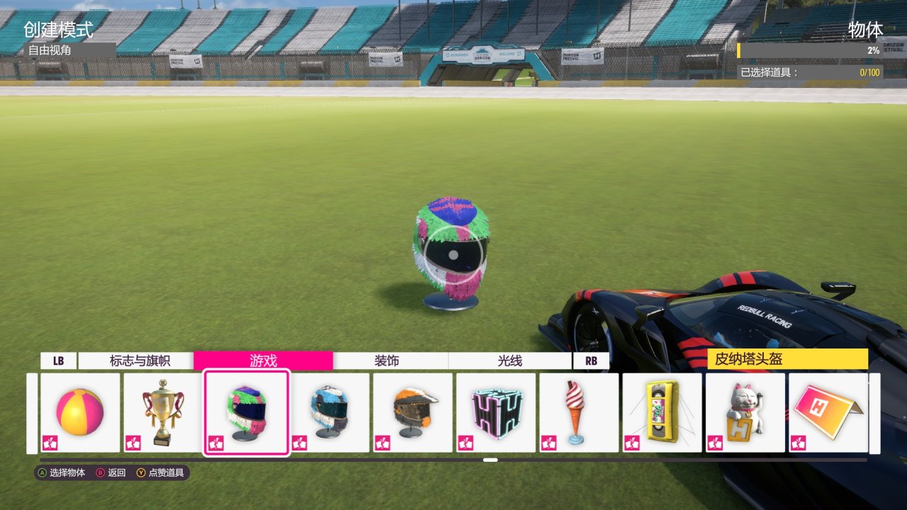 要求在體育場的橢圓賽道內破壞6個“皮納塔頭盔”,可以在單人模式(在線->地平線單人遊戲)下靠倒轉(撞完倒轉回去再撞,不過有一點cd)速通。皮納塔頭盔式樣如圖,由於現在還沒到時間只能用創建模式範例,到時候可能會補(不過大概率會忘…)