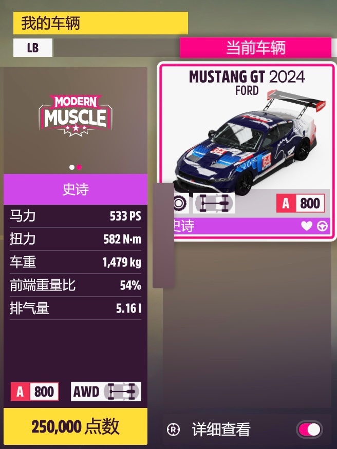 肌肉車+街頭,最快的肯定是RWD,但是個人不會去推薦的,有需自尋。這個組別的車普遍不算強,大部分都是力大磚飛的飛柱車,盡力選出來輛平民輪椅,成績也不算差,操控比較穩,就是之前拉力dlc用到過一次的凱迪拉克。24款野馬可以換GT3同款套件,所以作爲花瓶車上場,更加偏操控了不過速度較爲不足。都是四驅拉力胎+寬體的調校,儘量保留了一定速度,考慮失誤率的情況下仍是一線選擇。