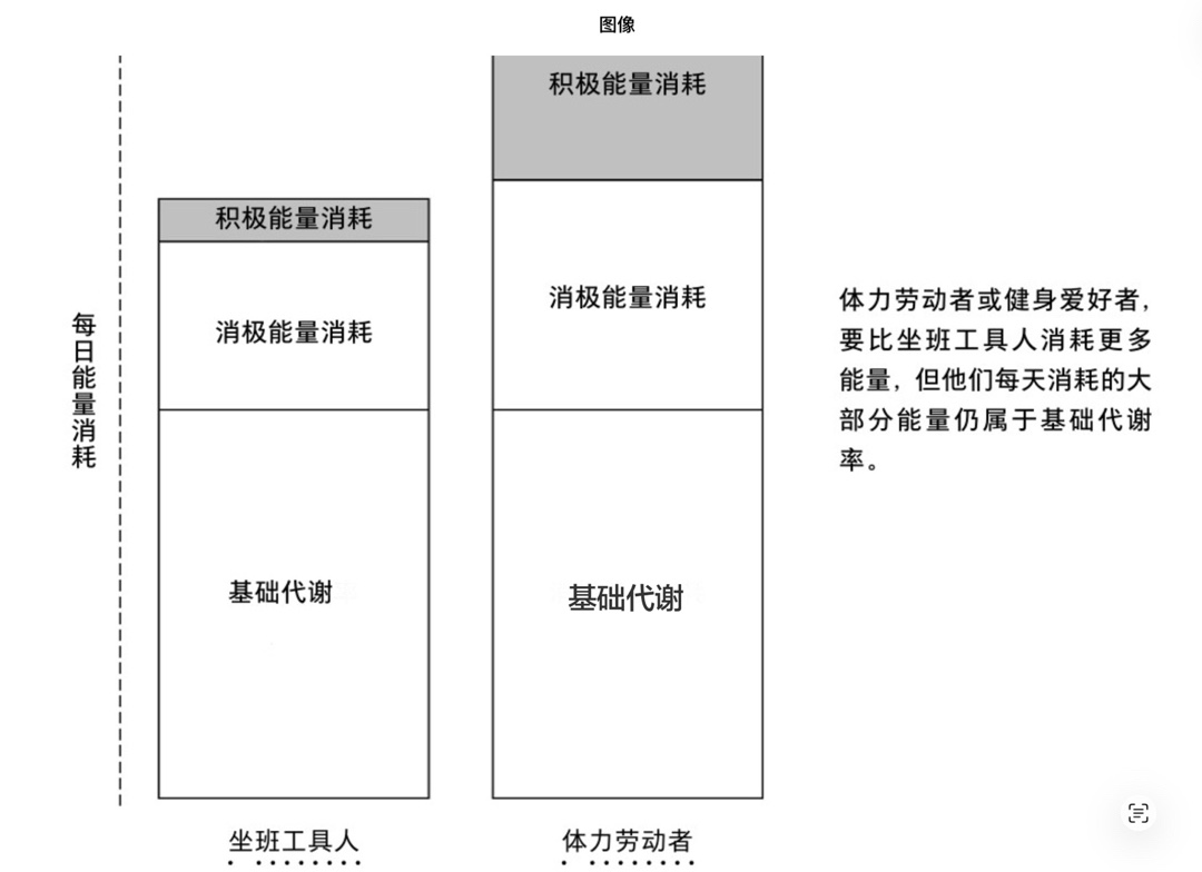 ① 基礎代謝(佔 70%):呼吸、心跳、體溫調節等 “下意識活動” 的能量,哪怕躺一天也會消耗;