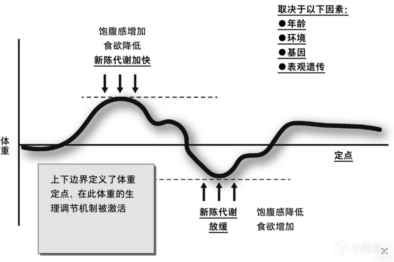 定点体重受到年龄、环境、基因、表观遗传方面的影响,比如我们熟知的外胚型、内胚型,这是基因方面的影响,比如说生活在高纬度寒冷地区的人会比热带地区的人体脂率更高(北方省份的BMI指数比南方省份高),这是环境方面的影响,其他方面不做过多赘述。