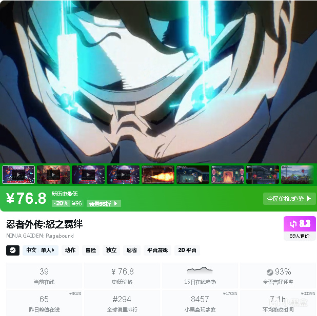 由備受讚譽的《神之褻瀆 Blasphemous》開發團隊傾力打造,《NINJA GAIDEN: Ragebound(忍者外傳:怒之羈絆)》成功融合了由特庫摩(Tecmo)(現爲光榮特庫摩 KOEI TECMO GAMES)在紅白機經典時代創立的《忍者龍劍傳》系列的世界觀與玩法,以及現代3D版本《NINJA GAIDEN》的深度與緊張感。跨越時代的精華在此交匯,創造出一場史詩級且扣人心絃的冒險之旅。