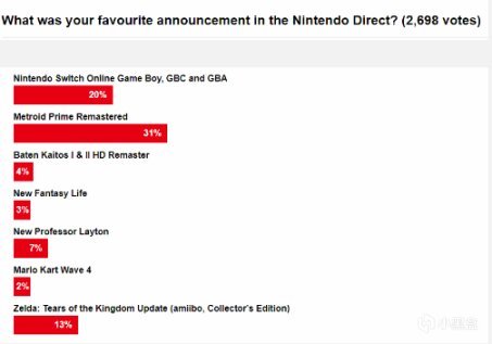 外媒nintendolife在任天堂直面会后发起了投票,调查玩家对于本次直面会的看法以及玩家最喜欢的游戏亮相。