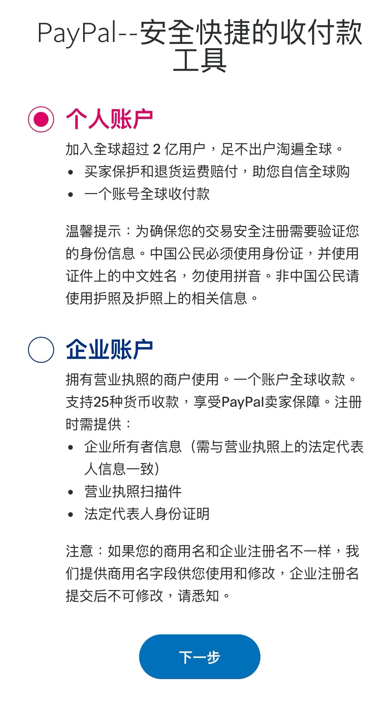 个人账户如果经常大额收款,PayPal 可能会要求升级为 商家账户 并补交资料。