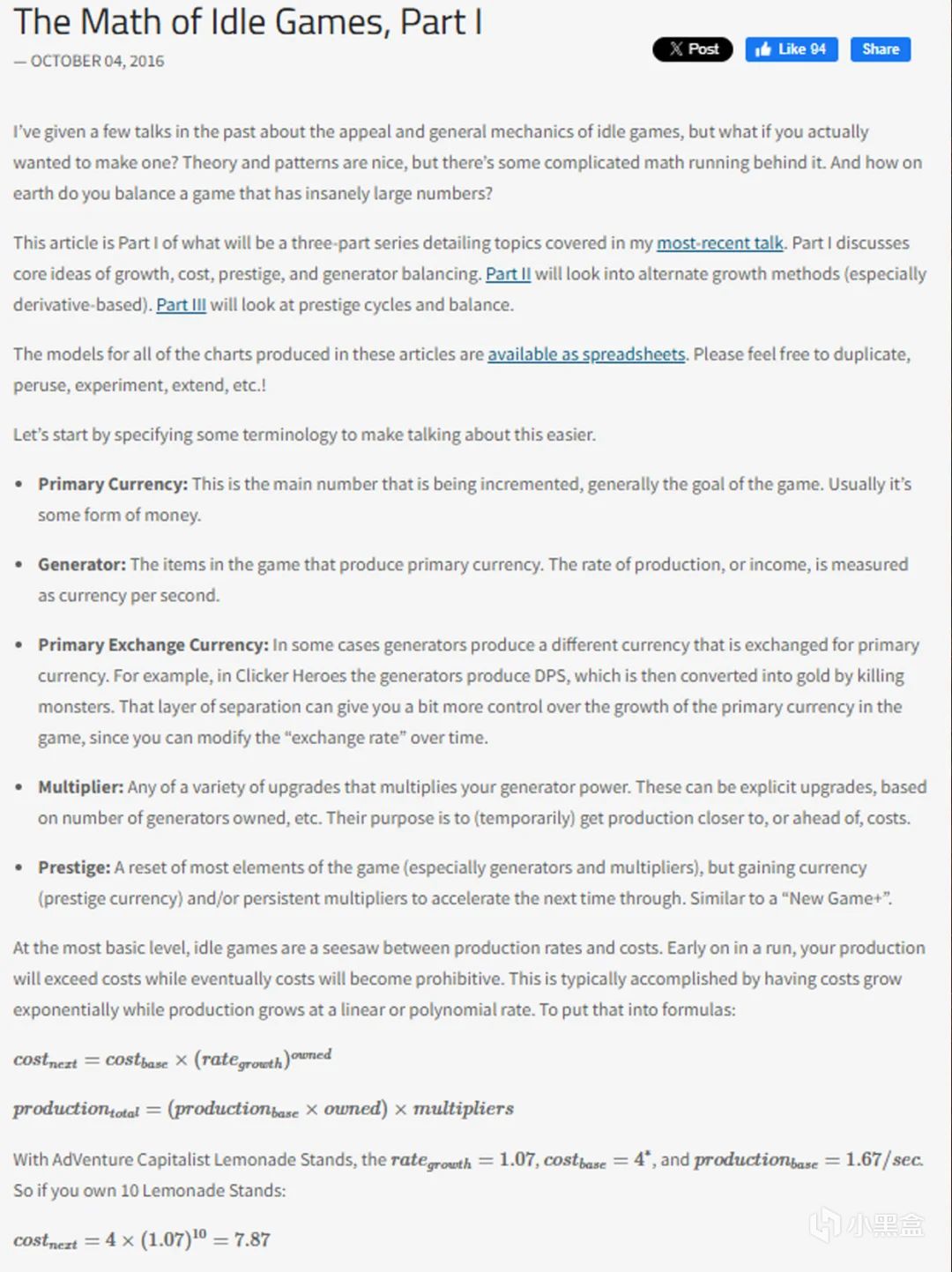 详细讲解了点击曲奇类放置游戏的数学模型,用各种数学曲线阐述不同阶段,不同内容的游戏体验的数学原理。