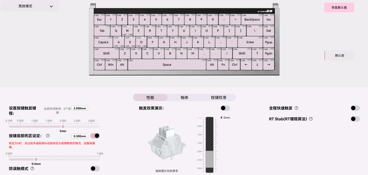 動態鍵程、Snap Key(SOCD)、持續觸發等高級鍵也都有