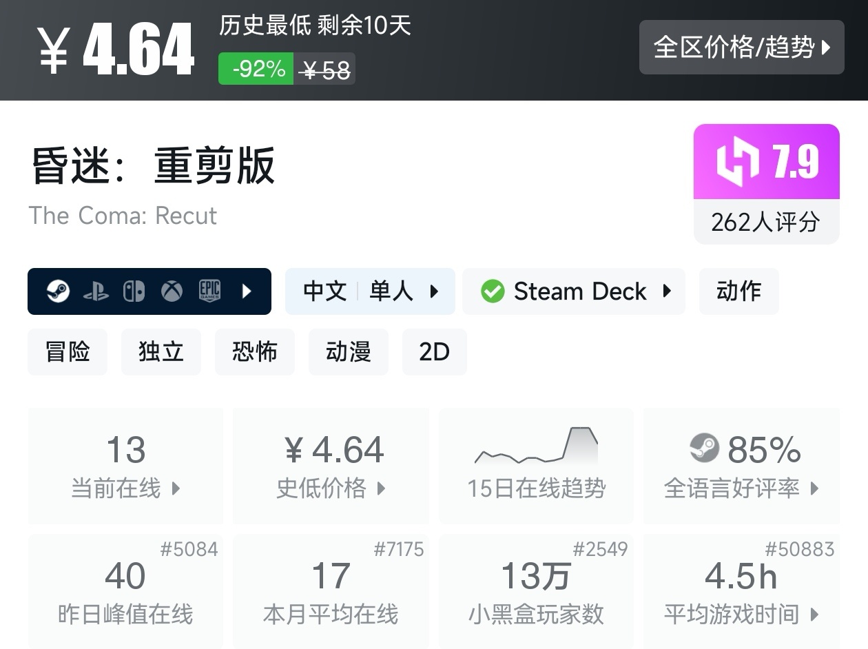 大家好,没错,又是我,你们的老朋友亦然,在最近,又有很多游戏加入了折扣,当然,这其中还有很多一折游戏,其实一折游戏,往往最吸引人,因为谁不愿意买那些骨折的游戏,因为一折游戏不容易背刺玩家,我将为各位进行一个汇总,希望我的汇总,能够帮助各位盒友挑选心仪的游戏。
