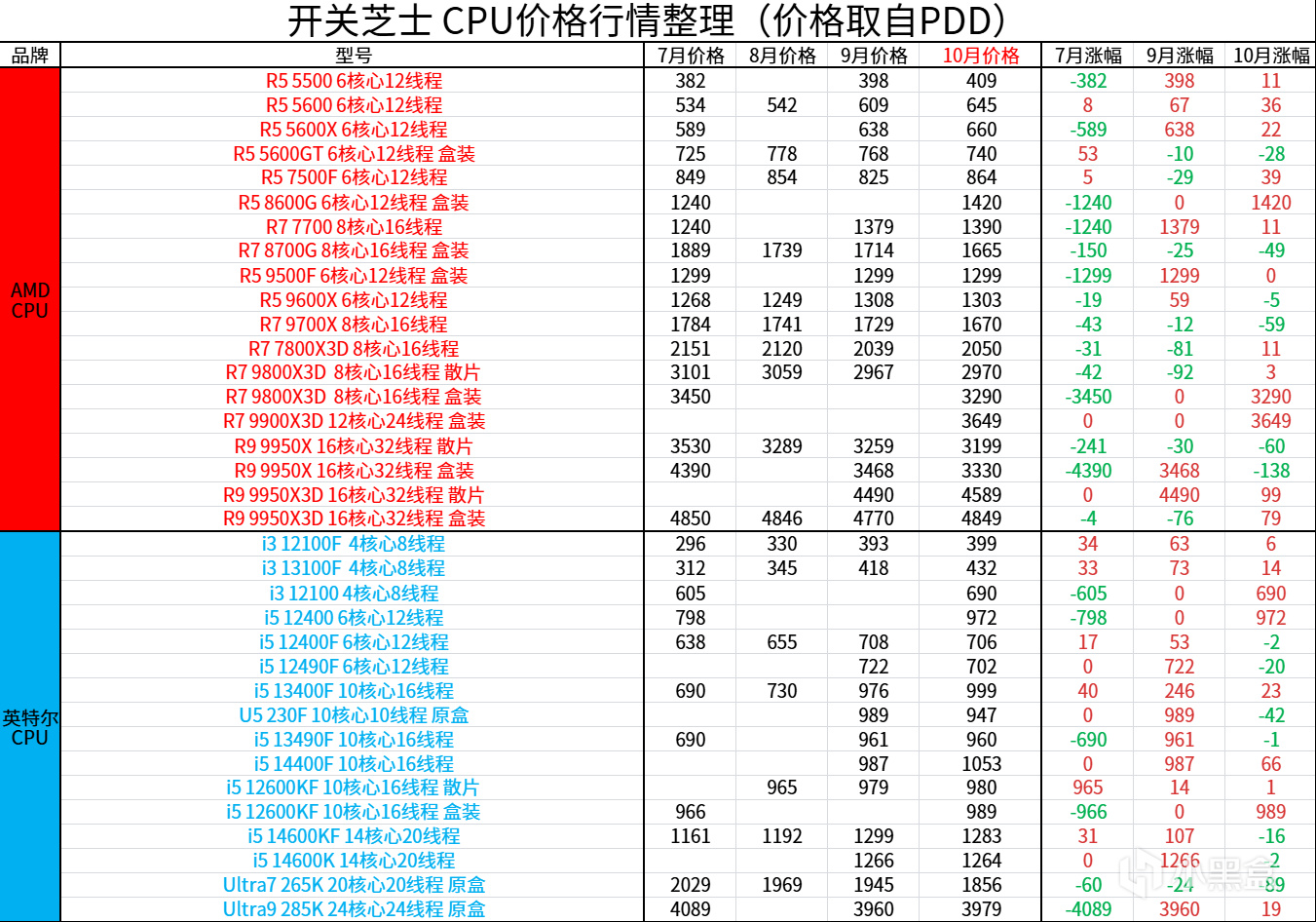 本文咱来关注一下CPU主板价格,九月份红蓝两家CPU都调整过一次价格: