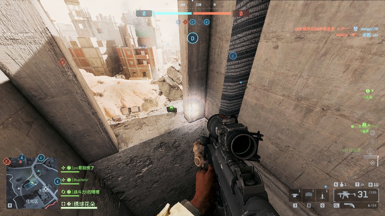当你用这个阔剑把这栋楼占下来后,我们作为侦察兵,因为职业特性的缘故,我们本身就自带更加稳定的打狙能力,在楼上直接开架全图爽刷KD,这也是我在研究点位时的最初目的,我想在高点快乐打狙的同时保证屁股安全~