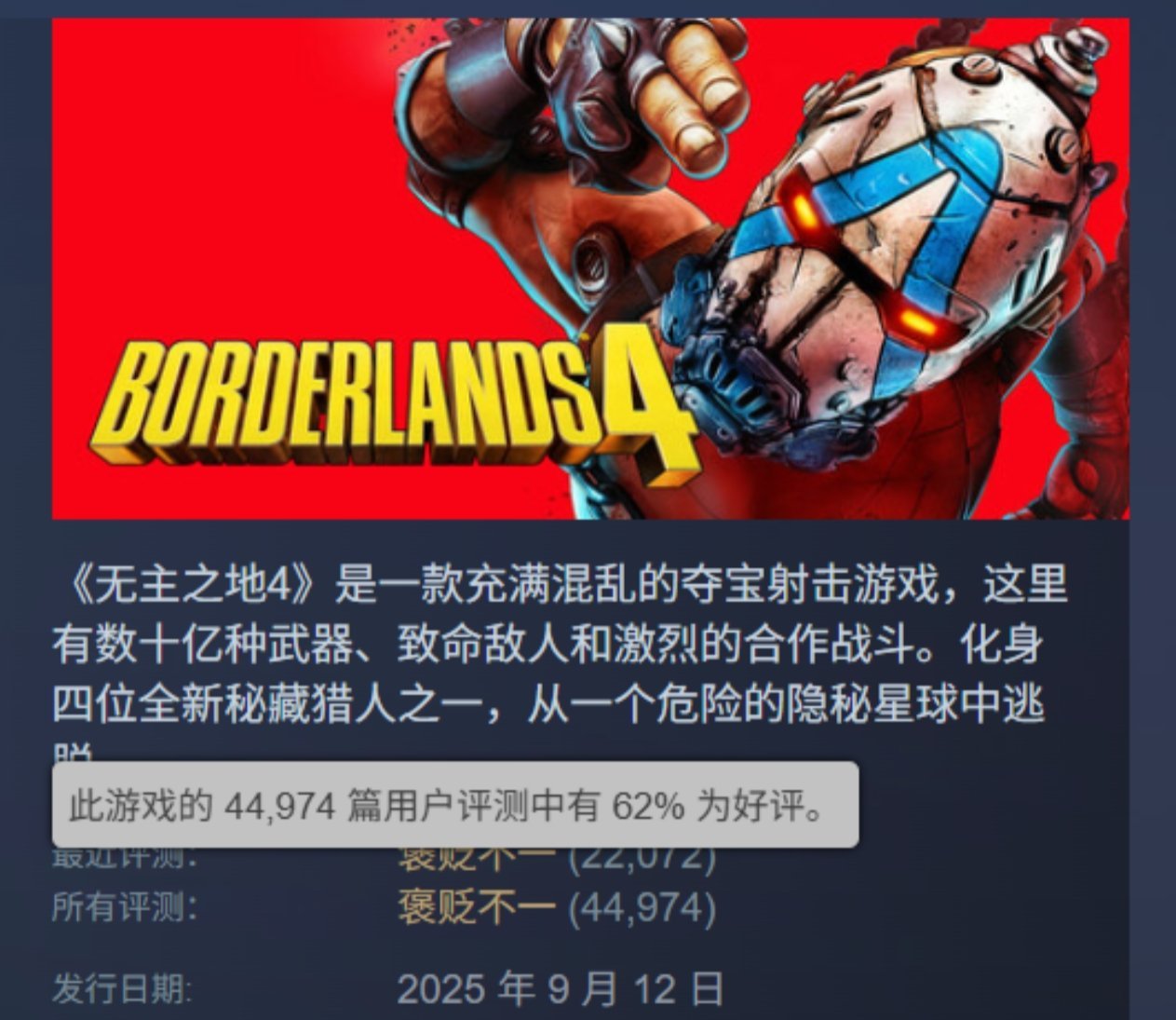 《无主之地4》于2025年9月11日发售,作为经典刷宝射击游戏系列的最新作,其首发表现曾备受关注,但持续的技术问题和内容创新不足导致玩家大量流失。