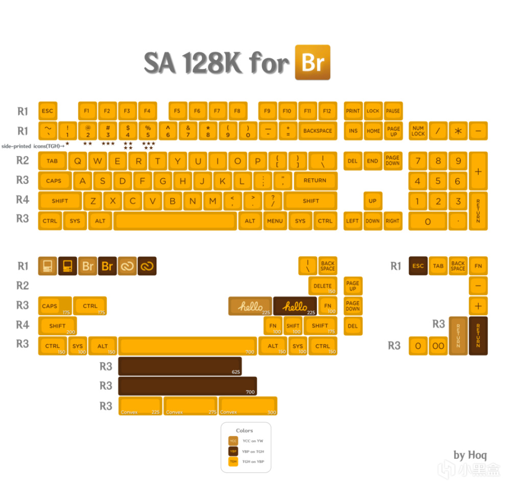 這款鍵帽是由「Mech.Cafe™機械咖啡館」的設計師「劉hoq」設計的軟件主題鍵帽,這位設計師之前設計了很多的SA球帽,有很多非常的作品,例如同爲128K系列的AI、PS、AE主題鍵帽,火烈鳥鍵帽,還有朝代系列的唐、宋、明等。而這一次則是把早在19年就放出過IC靈感的Br正式進行了團購。