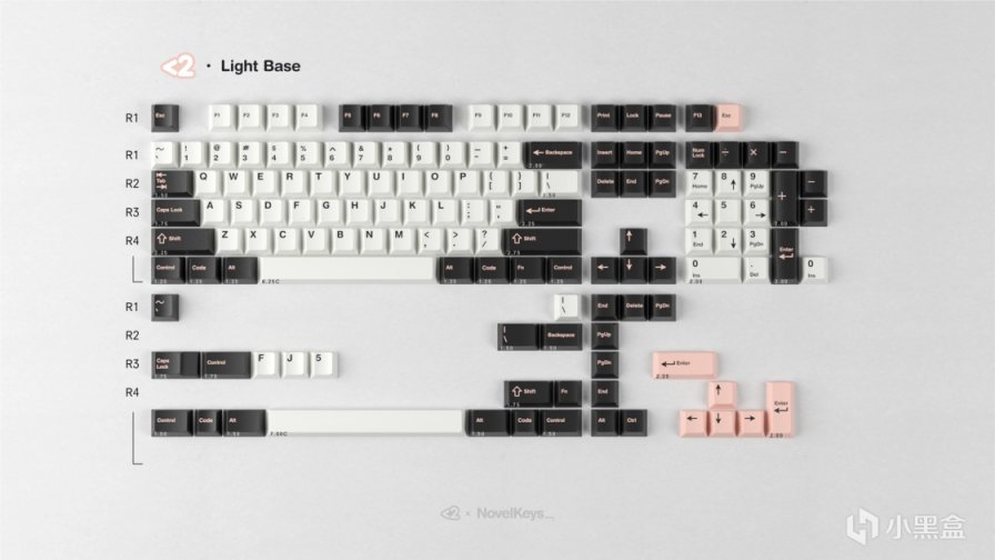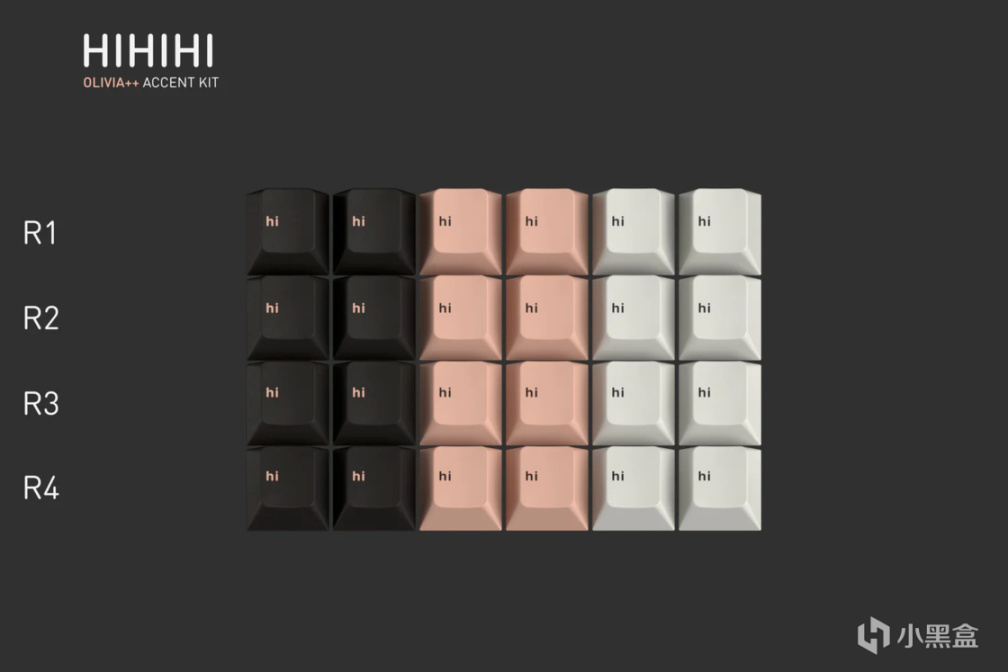 個性鍵帽在R1基礎上增加5個設計,補齊各個高度1U個性,增加1.75U shift 個性,增加與1.5U功能鍵圖案不同的2U backspace,增加Tab鍵位個性鍵帽。(總共30顆個性鍵帽)