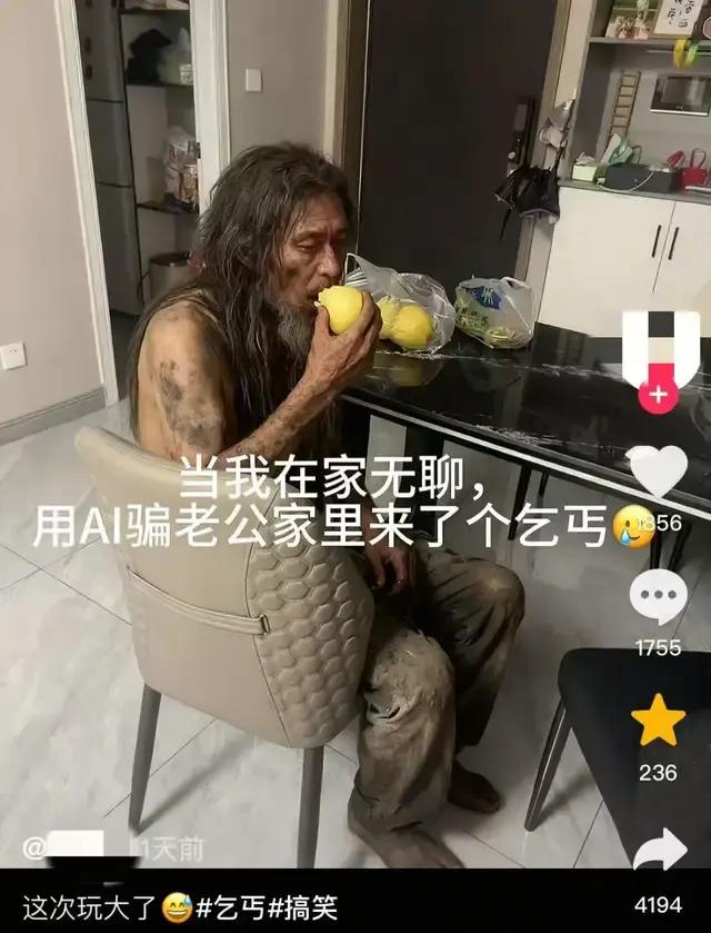 这些人用AI在自己拍的照片里,生成一个脏兮兮的流浪汉,发给自己的老公。