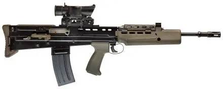 英國恩菲爾德兵工廠 1980 年代研發的無託步槍,發射 5.56×45mm 彈藥。早期型號 L85A1 因可靠性問題飽受爭議,2002 年改進爲 L85A2,更換導氣杆、槍機和彈匣,故障率顯著降低。現爲英國陸軍及部分英聯邦國家的主力武器。