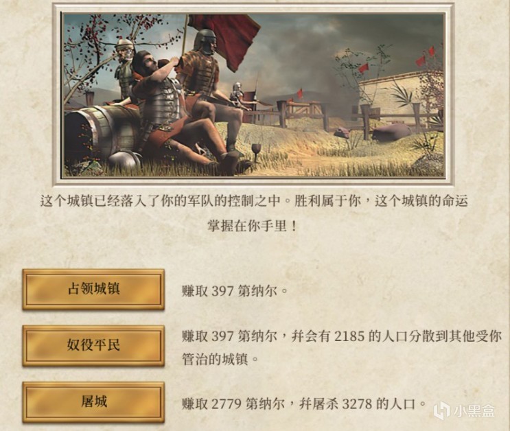 第一個選項是“佔領”,城鎮本身沒有什麼損失,並且保留人口。
