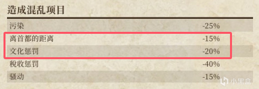 如上,文化懲罰的主要來源是建築物,不同文化的建築物不同,因此產生懲罰,且建築物的等級越高,它的文化影響度就越大。