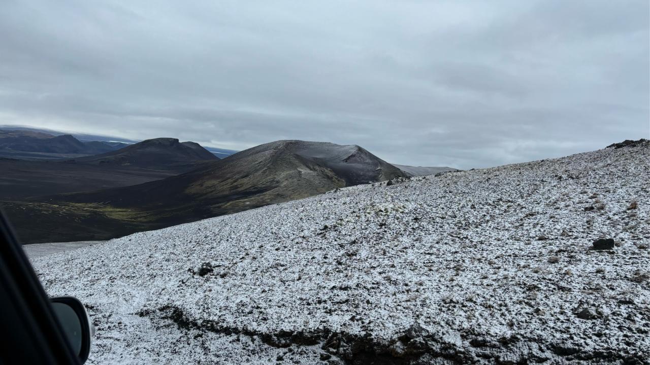 落地机场本地车行blue carrental提车,提前租了兰德酷路泽😎,其实在国内就是普拉多,四驱还是很靠谱,我们第三天走f路到高地,就是第一张图的景色,地上都是开罗尔晶体(幻视)。谈笑间不小心就开上雪山了地上车辙都快不见了我们才意识到不太对劲。马上一个悬崖勒马,往回走去爬了爬红苹果火山🌋,景色确实很震撼,红和绿交织在一起,是大自然的奇迹