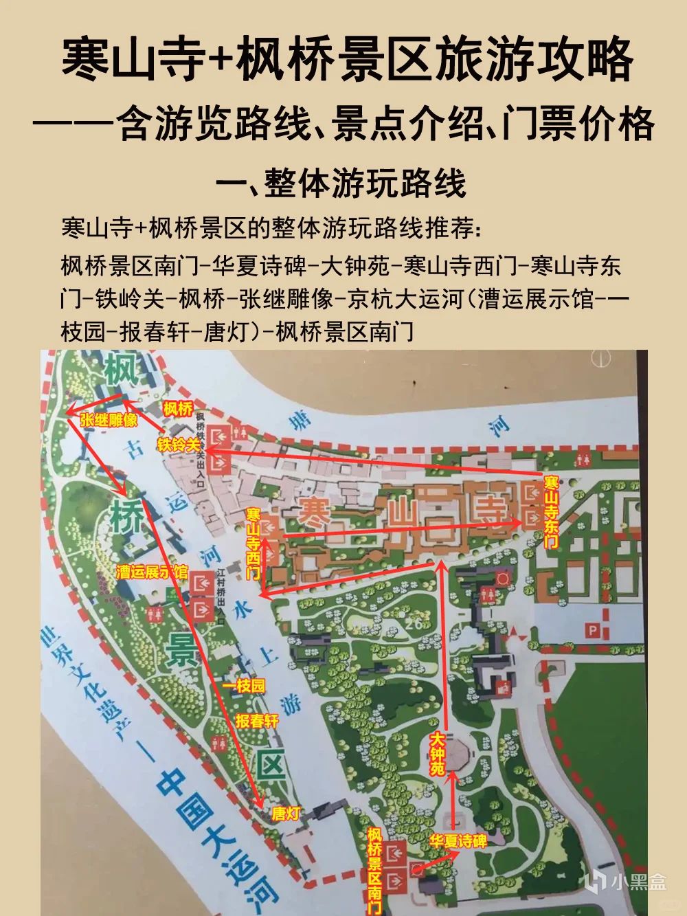 寒山寺正门——游览寒山寺——普明塔院门出来——铁岭关——枫桥——听钟桥(沿京杭大运河漫步)——渔隐桥——大钟苑——华夏诗碑。