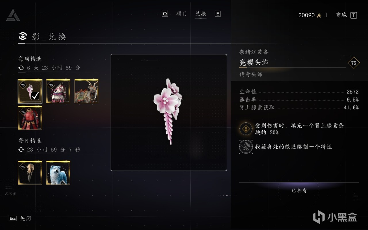 本週依舊五個周常任務,本體四個任務,DLC一個任務,兌換商店已更新。奈緒江櫻花套頭飾屬於必換外觀,十分值得一換。更新時間是凌晨,但商店已更新。 以下本週免費兌換的其餘商品: