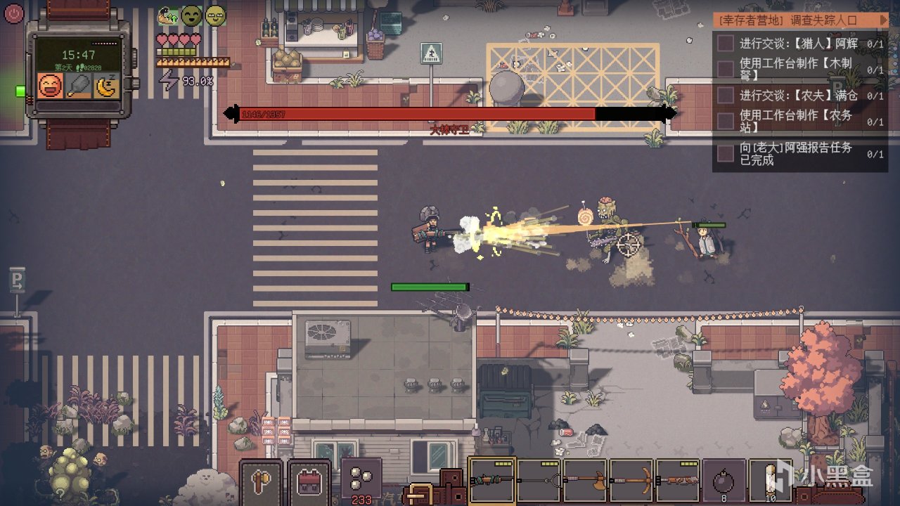 《腐朽默示》虽然是像素风格的,使用了柔和的光影效果,很有90年代日式漫画的既视感。为了衬托末日这个题材,整个游戏地图里各种场景和建筑都走的破败风格,四处都是各种废弃汽车和物品。但有一说一,游戏里的病毒不是才扩散没多久么?怎么一下就全世界破败成这样了,似乎是有点用力太猛的样子了!