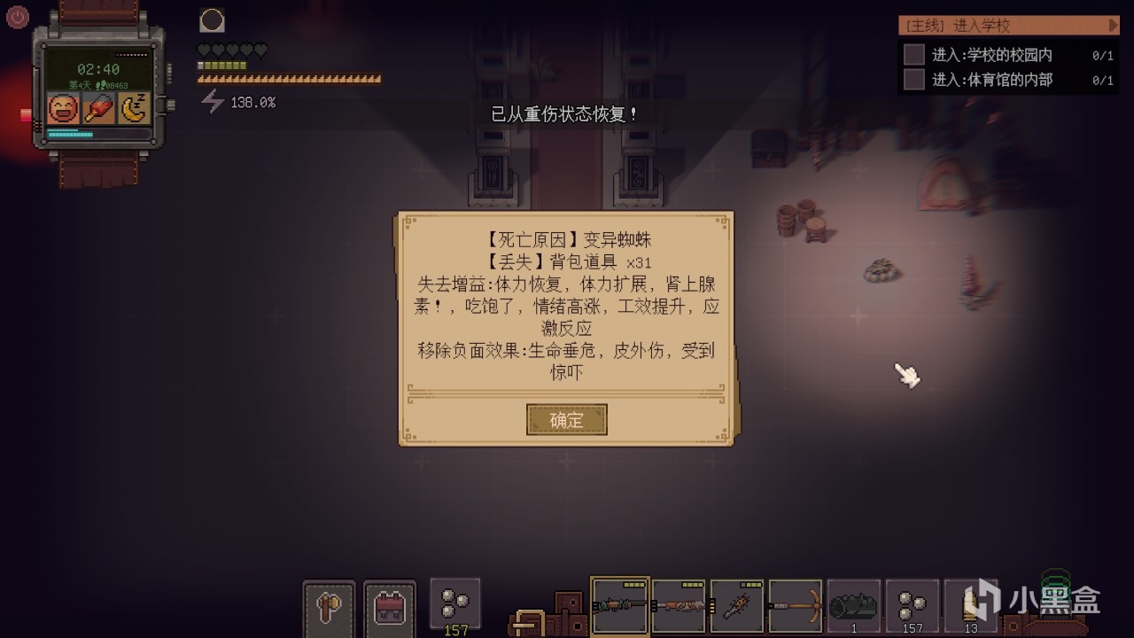 在生存稳固下来的时候,把自己武装到牙齿后也可以进去探索下其中的各种隐秘。不过千万记住,利益越大风险越高,重要的资源不要随身带太多,毕竟死亡了可是会把包里的资源都掉落了的。