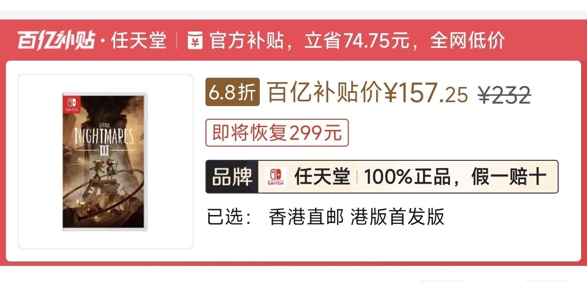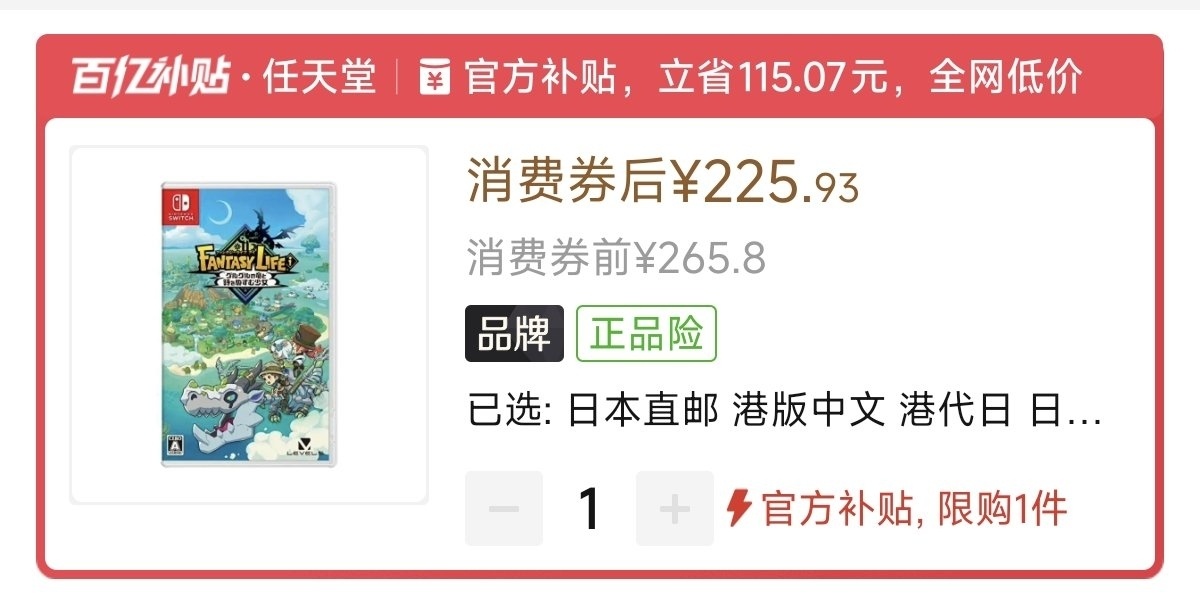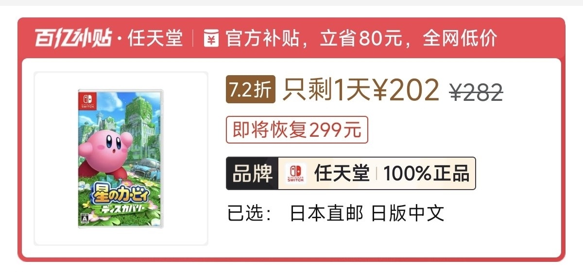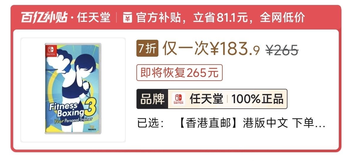 本週低價:ns1版229元,ns2版261元