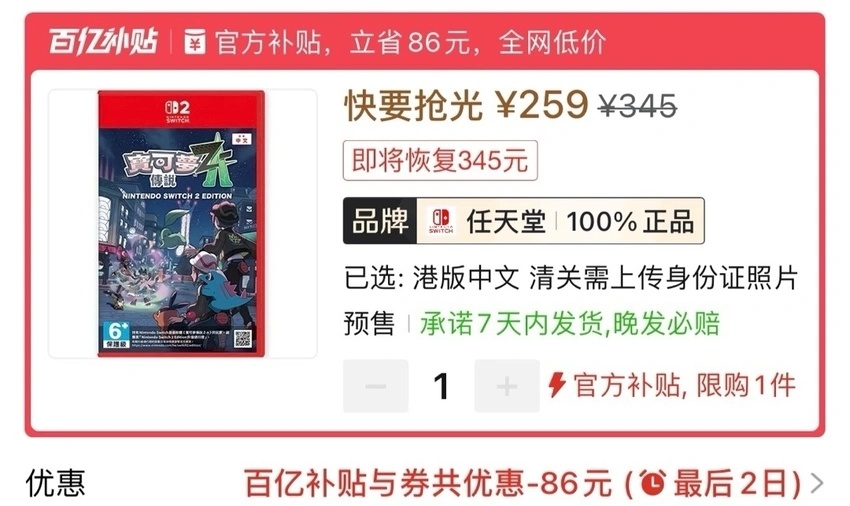 本週低價:ns1版229元,ns2版258元