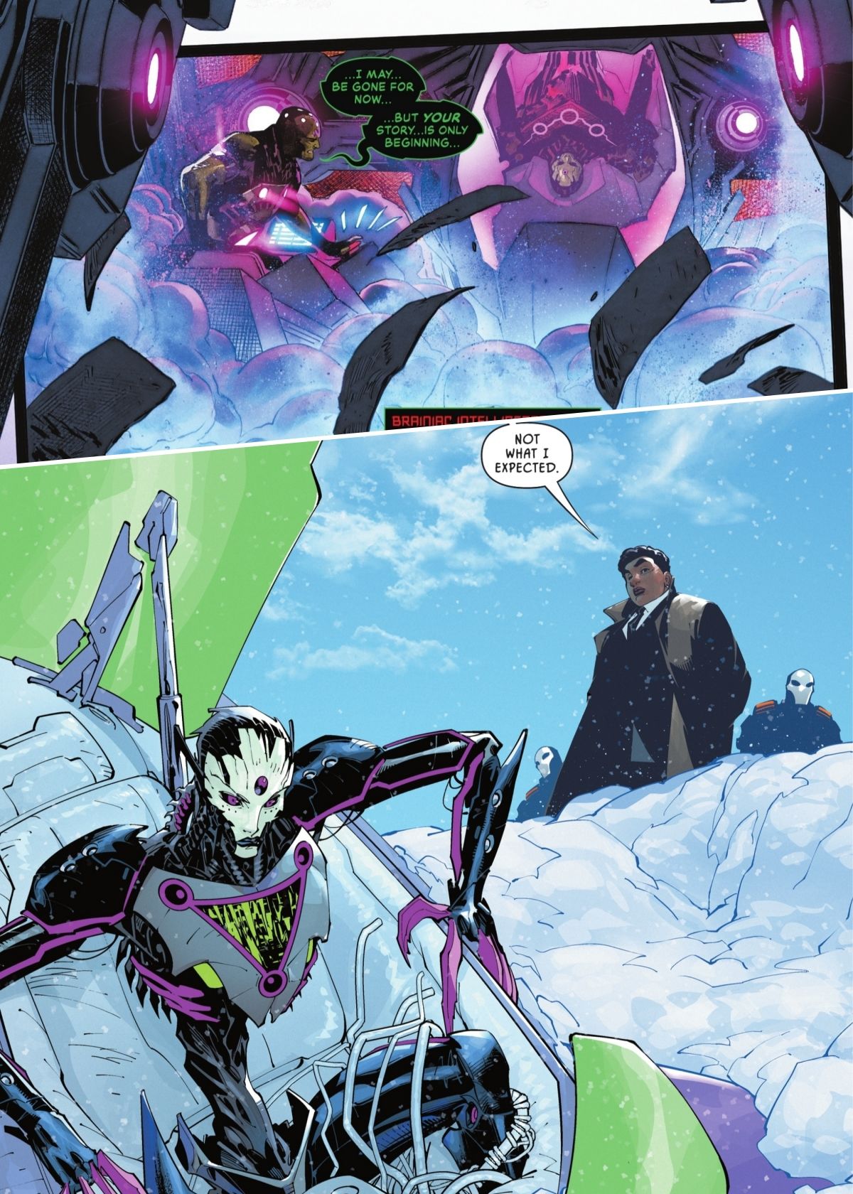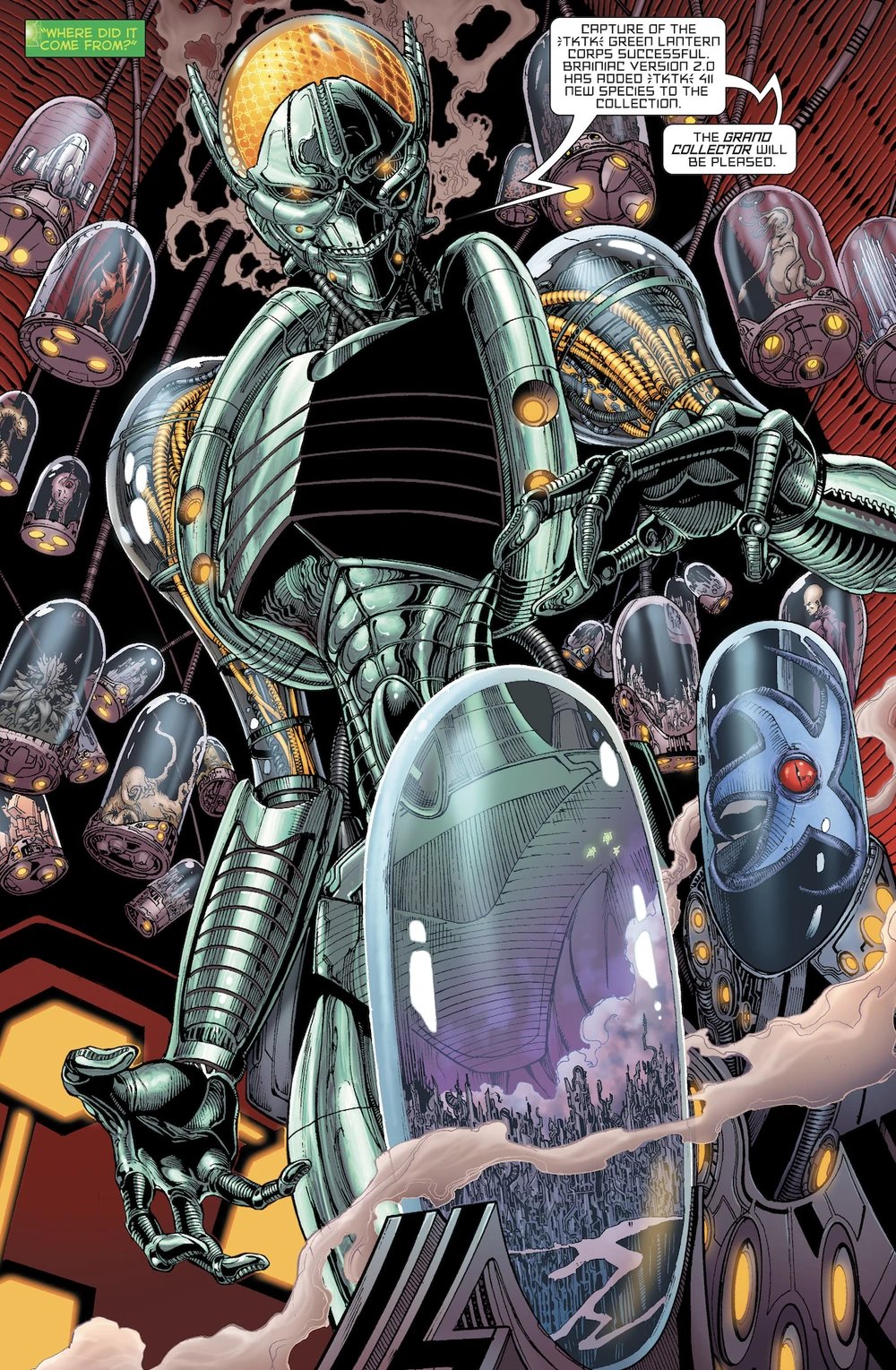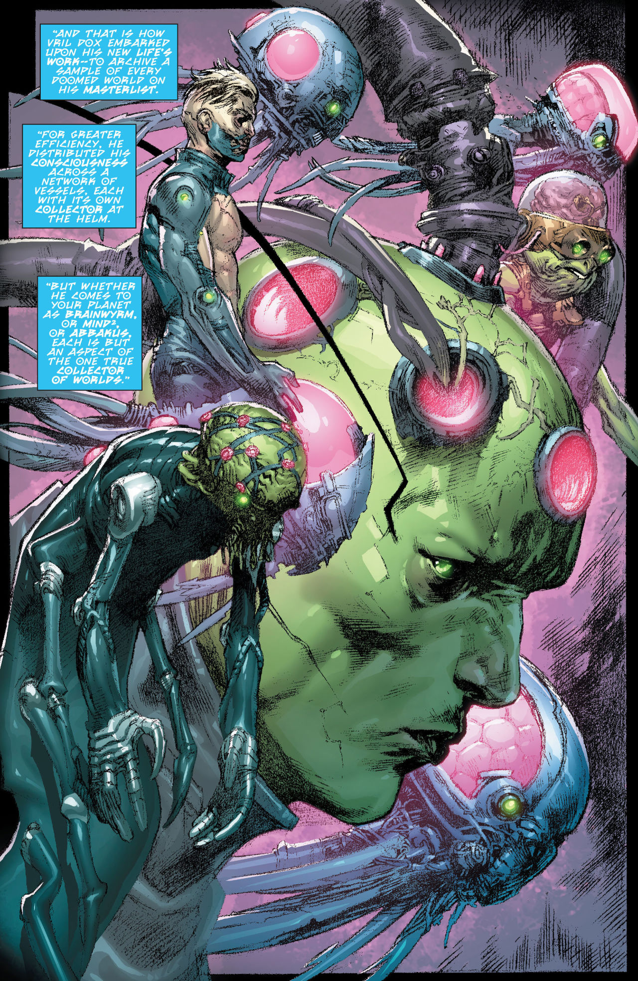 而为了将布莱尼亚克的设定圆回来,杰夫琼斯则在《动作漫画》中讲了他在35年前偷走氪星坎多城的故事,并且展示了布莱尼亚克最新最广为人知的造型,也解释了原来过去漫画中不同版本的布莱尼亚克的造型,都是其为自己创造的生化躯体,意识则可以在不同的躯体内寄宿。(后面也经常玩这个梗,把不同时期的本体拉出来做背景)