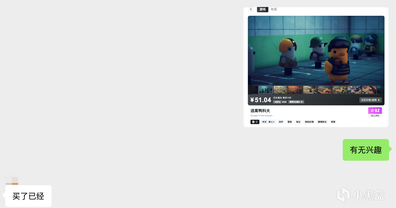 小喇叭對搜打撤本來沒什麼興趣的,但看到居然可以捏出故人之姿以及好友邀請,還是怒花56元買了《鴨科夫》。