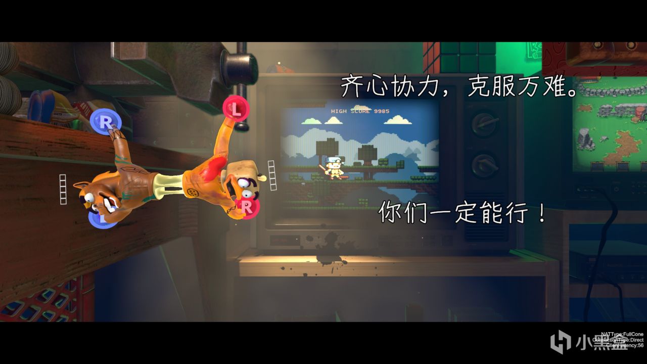 你跟好友扮演身子連在一起的鴨子和馬,白手起家(只用雙手),向着高地進發,這不就是雙人版的掘地求生嗎(笑),在demo裏你們需要追上溜掉的直升飛機向上攀爬,每一步究竟是換手謹慎的過去還是冒險蕩過去都需要你們自己決定。