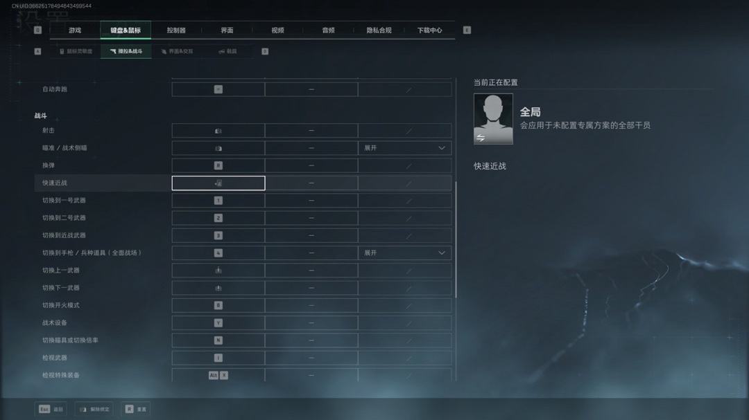 还是在键盘&鼠标,第二个操作&战斗中。下拉找到快速近战,选择一个适合自己的按键。这里小雨子用的是鼠标侧键,无论是刀小兵还是割盾狗的勾都很好用!