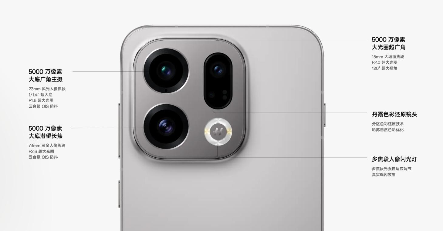 影像方面,OPPO Find X9搭載哈蘇超清四攝影像系統,廣角採用索尼LYT-808,潛望長焦則升級爲1/1.95英寸LYT-600大底。