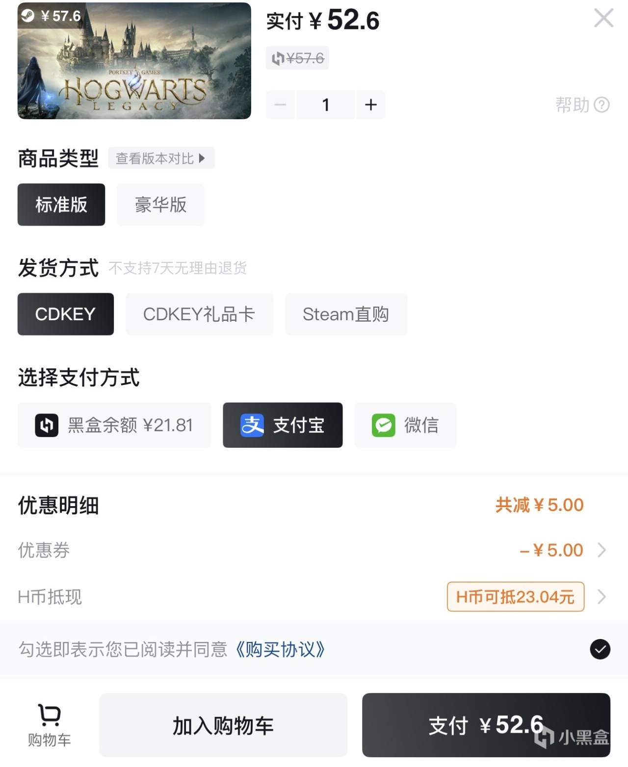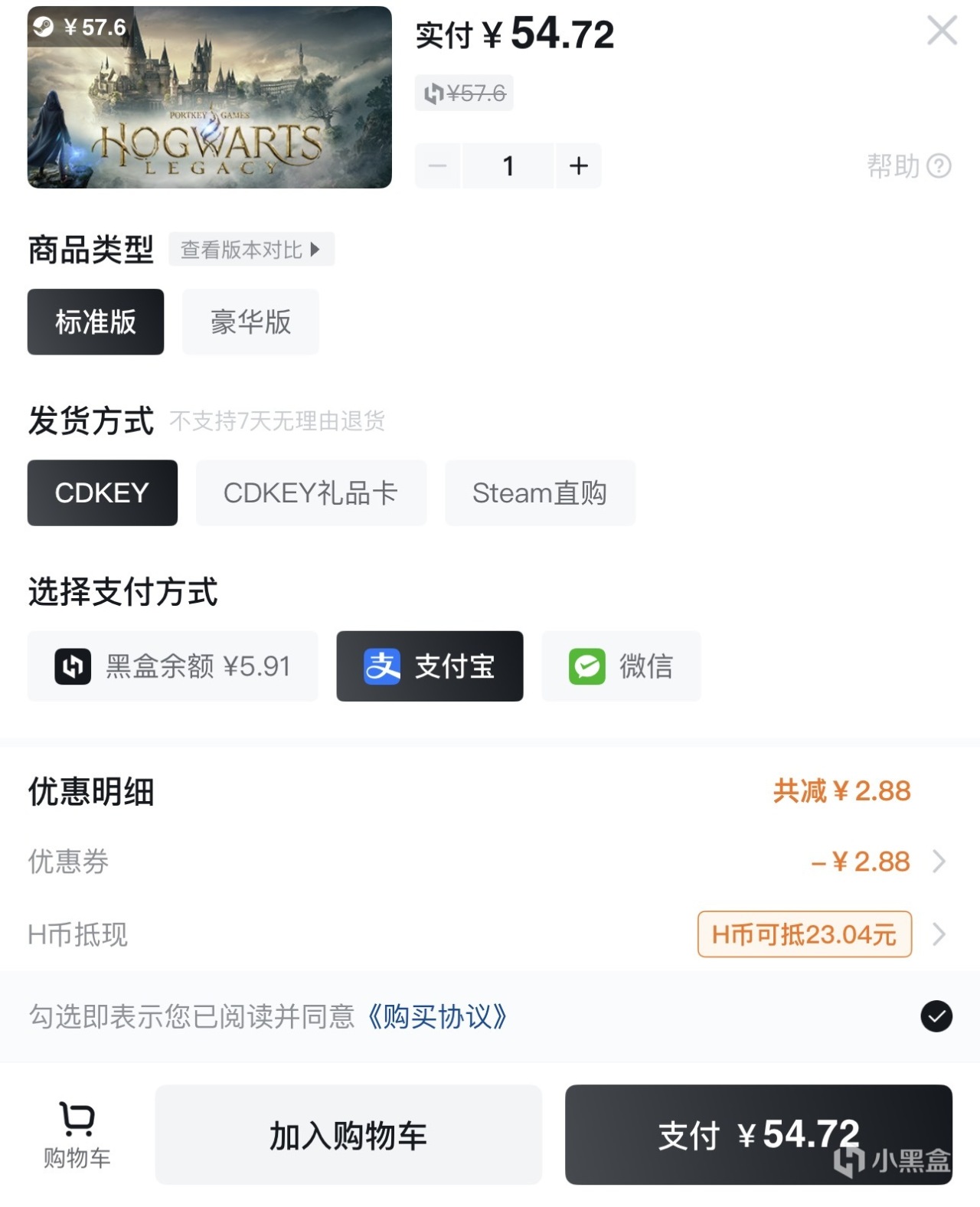 《霍格沃兹之遗》正在 Steam 平台 1.5 折超低价促销中!但是大家先别着急入手,在咱们小黑盒APP 购买时只需简单几步还能低至 52.6 元更便宜!