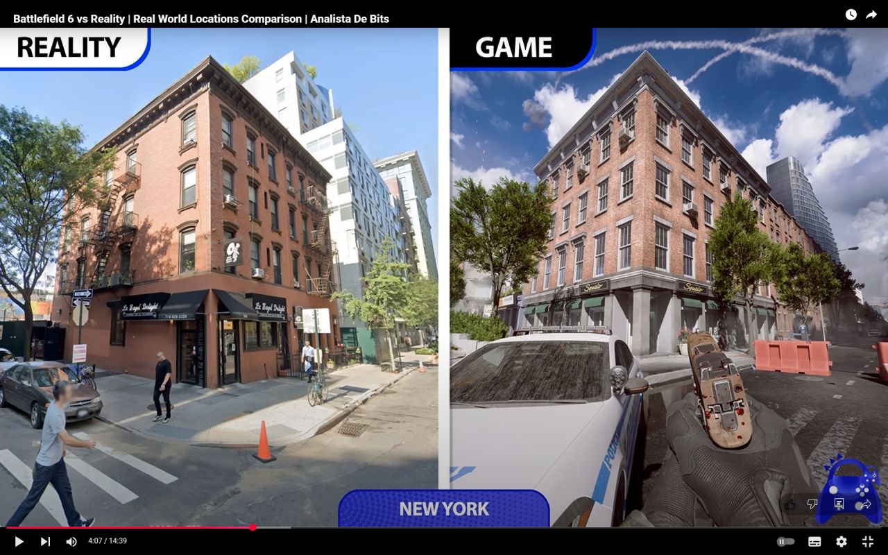 近日,YouTube博主“ElAnalistaDeBits”就發佈了一段視頻,比較了《戰地風雲6》與現實中場景的差異。他將直布羅陀和紐約的地圖區域與實際地理位置進行了對比,結果令人十分震撼。開發商DICE不僅在畫面上做到了極致優化,整體的遊戲表現也非常出色。
