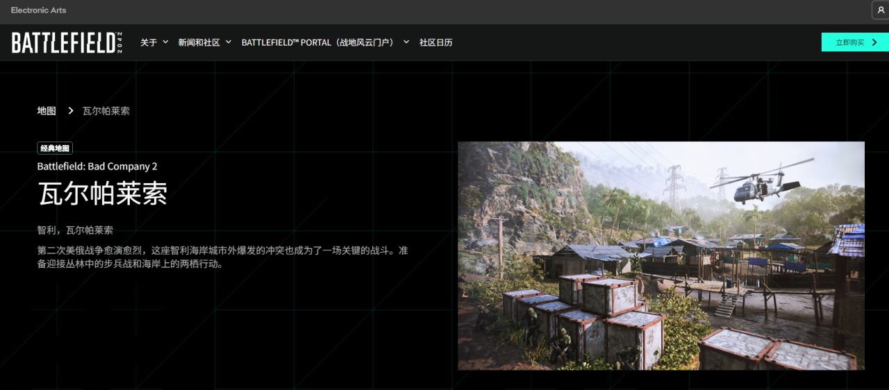 有用户在YouTube上留言称:“《战地风云6》制作的地图看起来和现实生活中的地图很像,这真是件好事。比如瓦尔帕莱索。它确实是一张传奇的BF地图。但它看起来一点也不像真正的瓦尔帕莱索,就好像设计师根本没有搜索过关于这个地方的任何信息一样,就像他们说的:南美洲=丛林,但那个地方根本就没有丛林,你懂我的意思吧。”