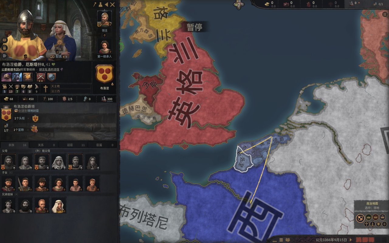 作为下洛林公爵的女婿以及威廉的好友,这位伯爵在诺曼征服后获得了一块英格兰领地。而他的三个儿子将成为未来第一次十字军的主力,并建立耶路撒冷王国。