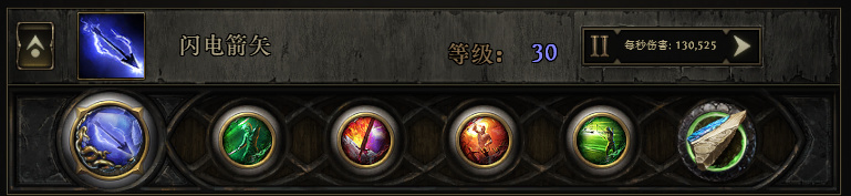閃電箭矢是銳眼的核心輸出技能,可以優先打滿五孔和升級21級技能寶石,21級技能寶石的獲取小二之前發過攻略,需要的小夥伴可以自取。截圖弄素材的時候,帶的項鍊的投射物等級是+2,所以這裏只有30級。