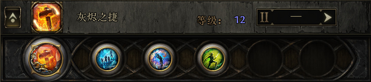 灰燼之捷佩戴需要力量,力量屬性低的小夥伴可以上低等級,等級對於灰燼來說不是很重要,不要是要效果。輔助技能推薦範圍擴大、火焰專精、急速腐化Ⅲ,灰燼之捷只是輔助清怪的,三個格子完全夠用了。
